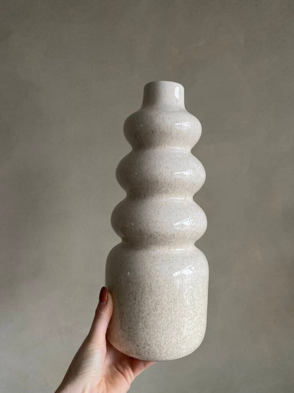 Een topper uit de serie van beige spikkel vazen. Style deze mooie vaas met een tak of bloem!